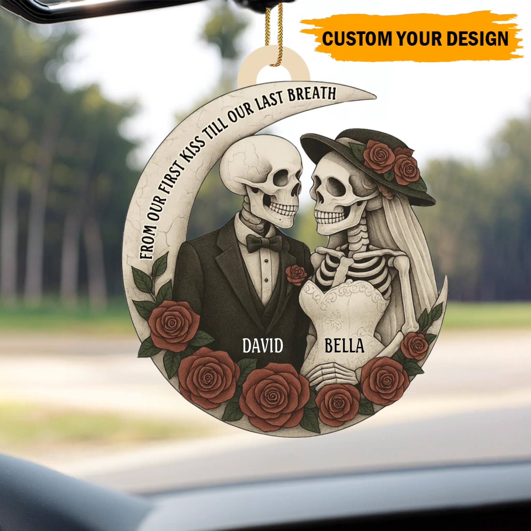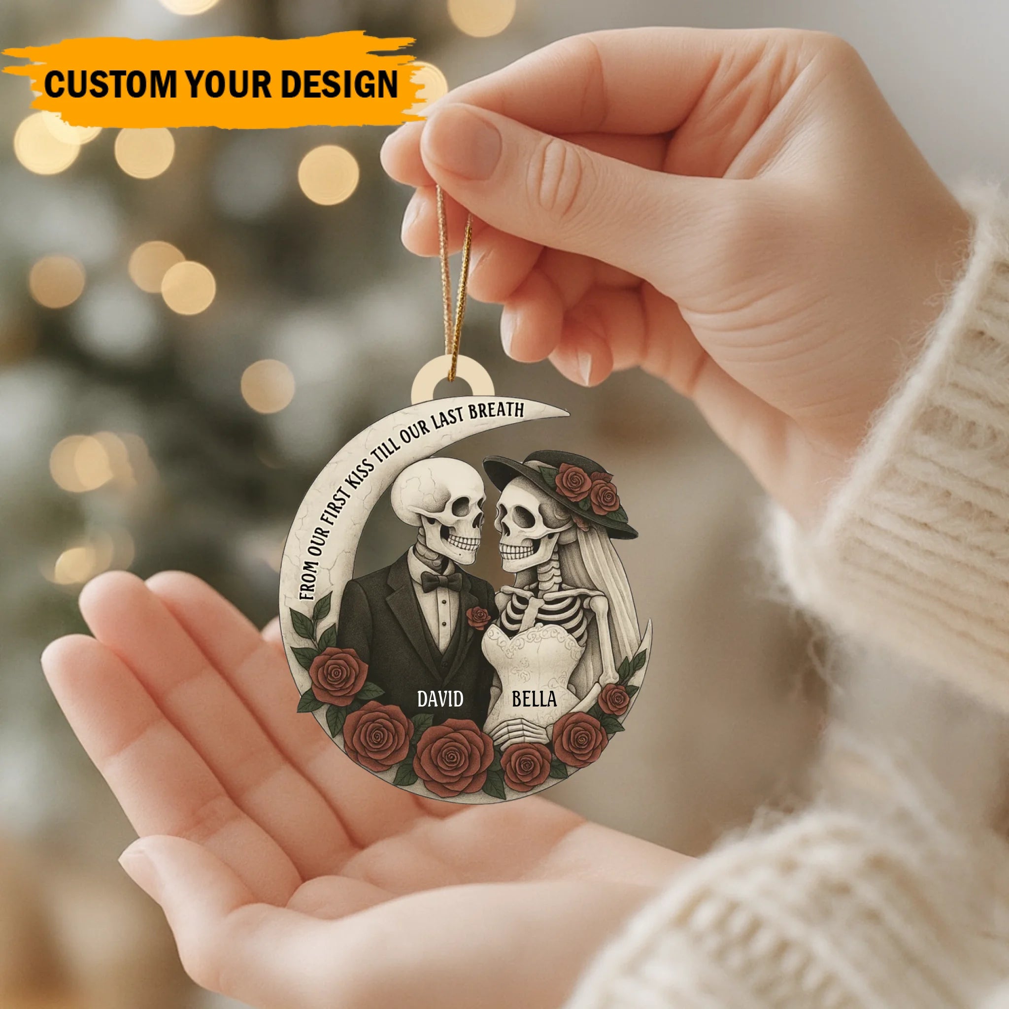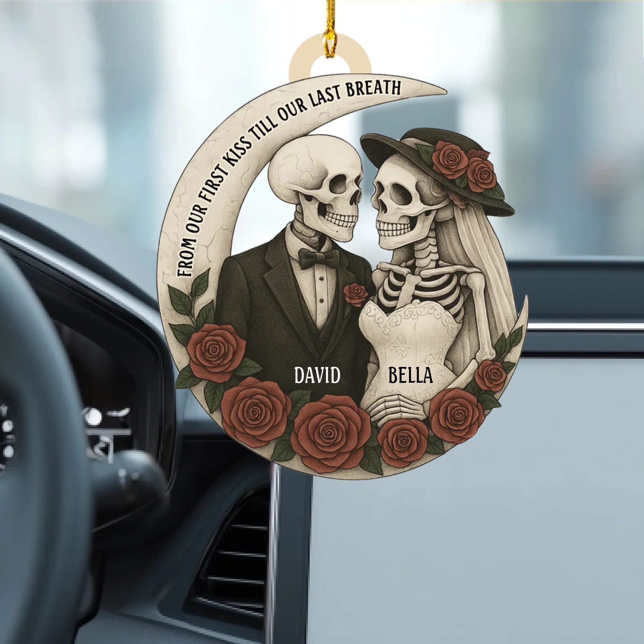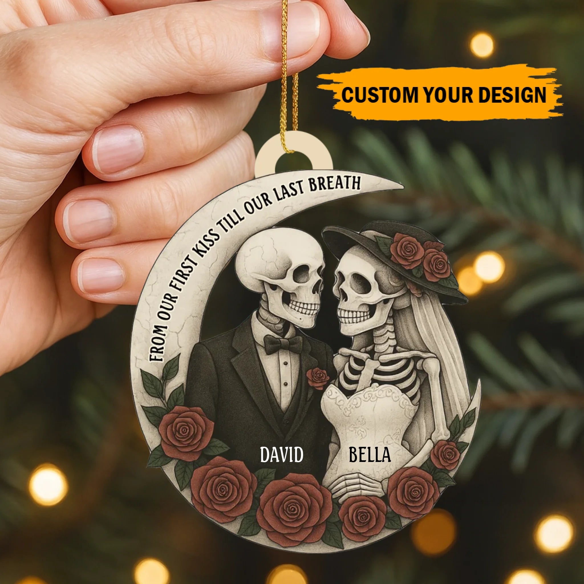 Personalized “Love Till The End” Wooden Ornament – Custom Couple Skull Decoration | Gothic Romantic Gift for Him & Her