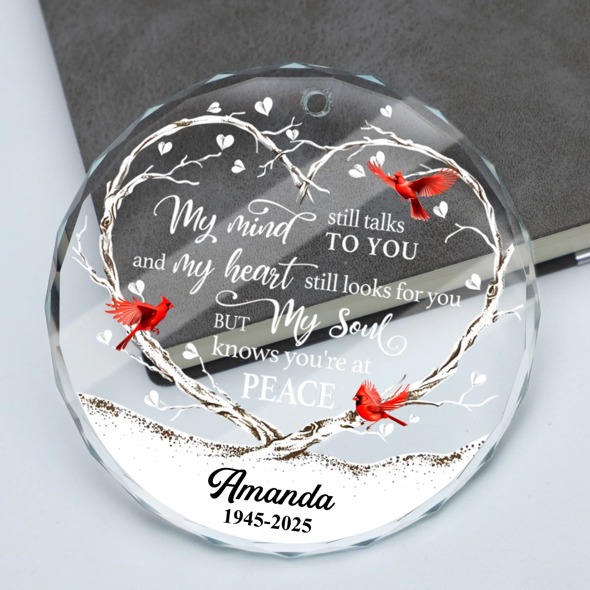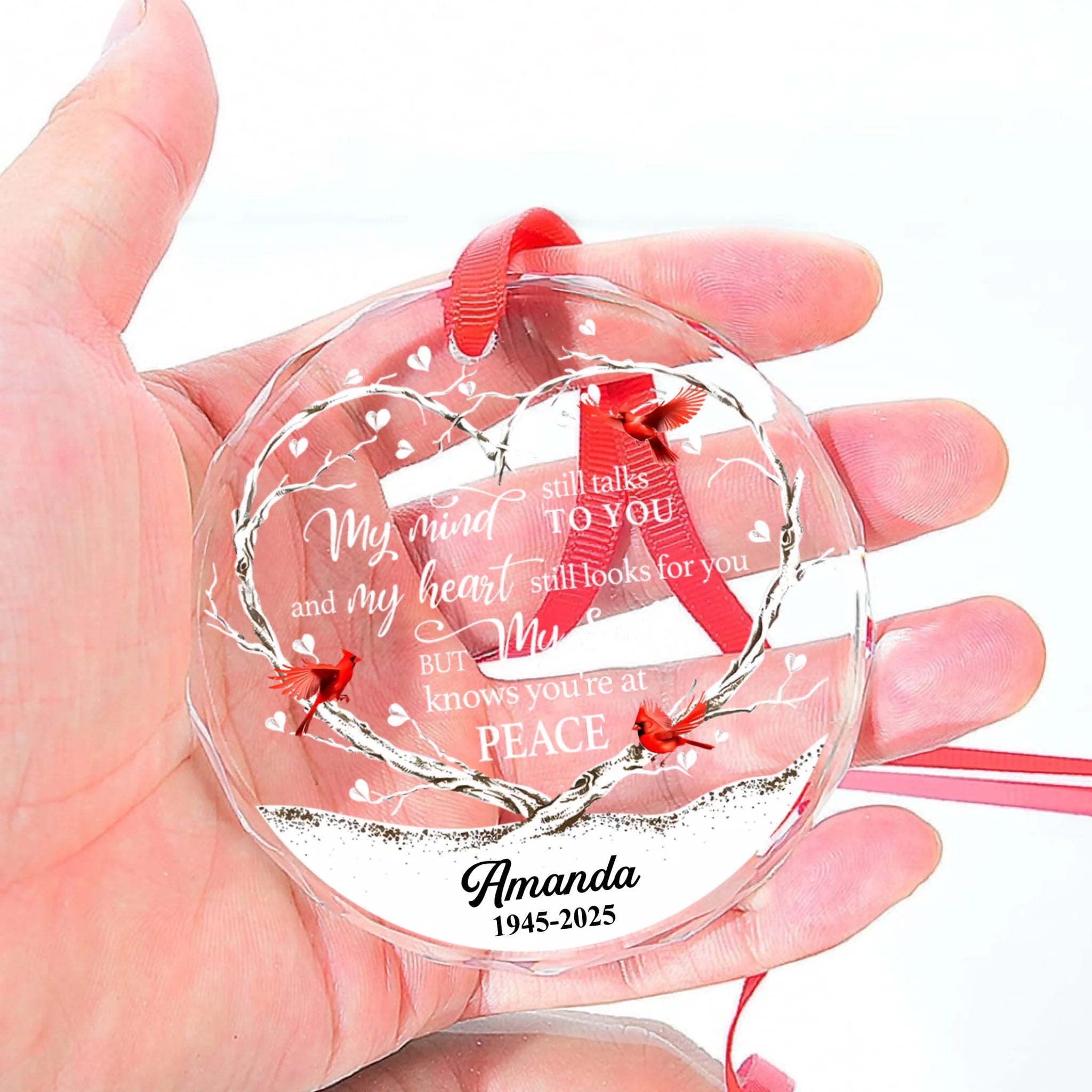 Personalized Memorial Round Glass Ornament - "My Mind Still Talks To You" Crystal Prism Keepsake with Custom Name & Years