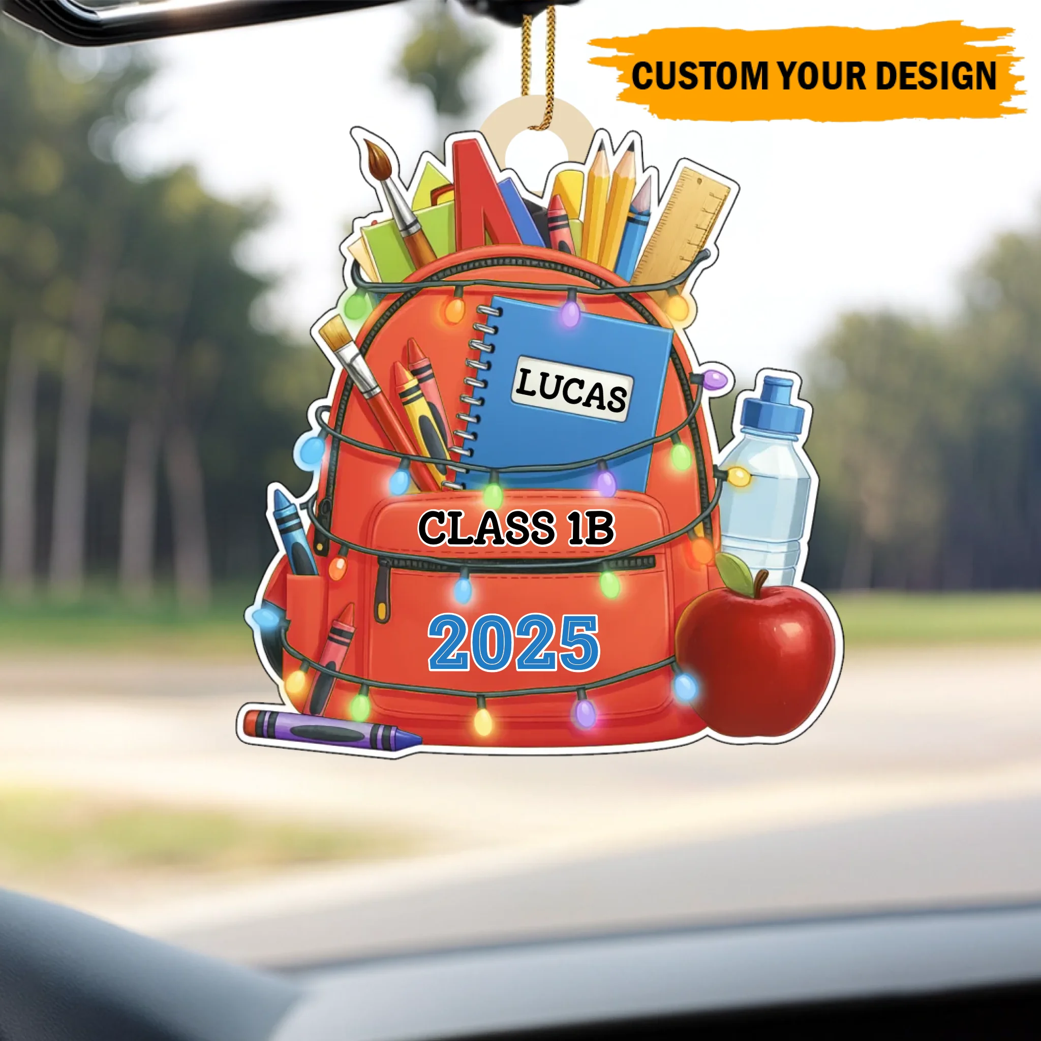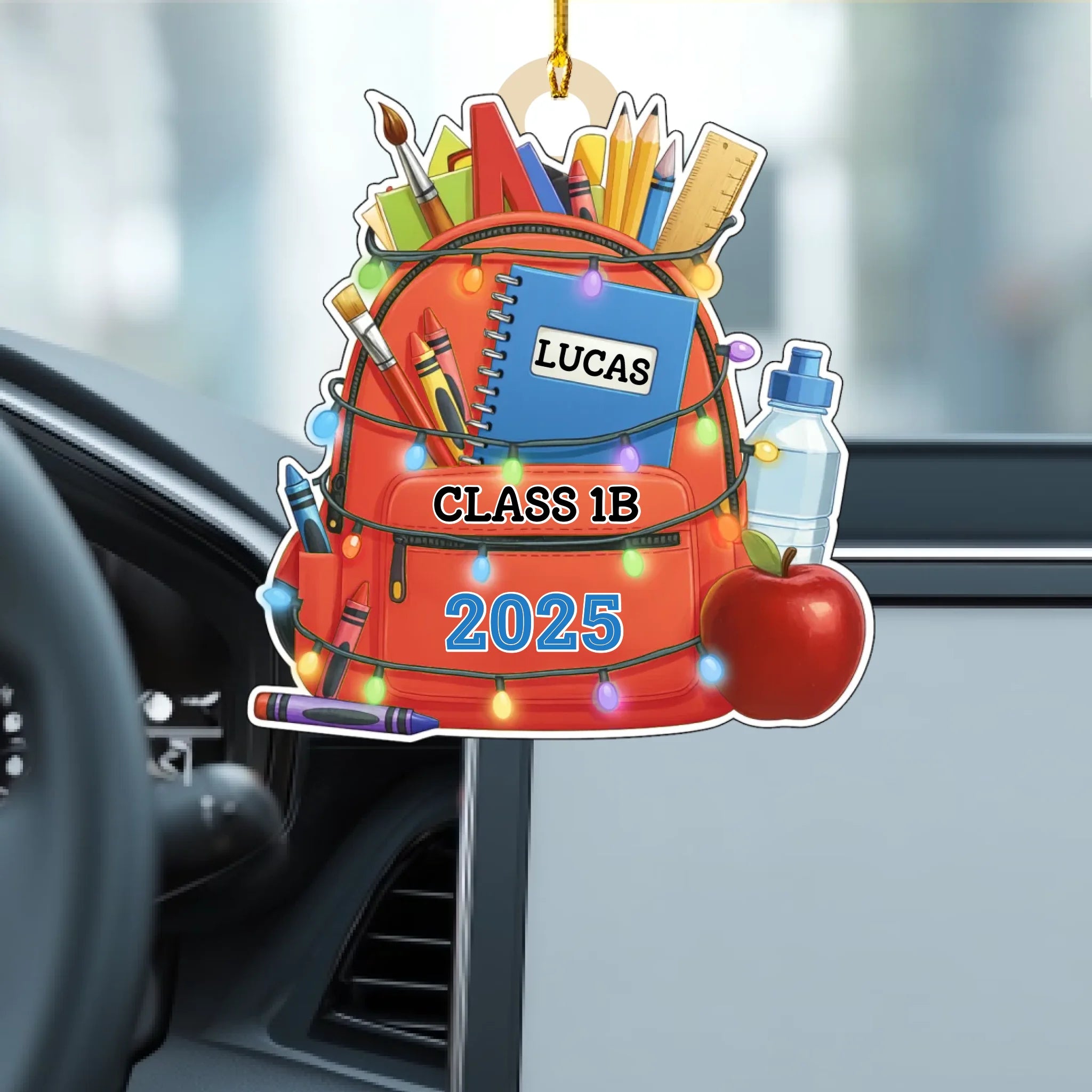 Adorno de madera personalizado para mochila escolar - Recuerdo con nombre y clase personalizados para niños | Edición 2025