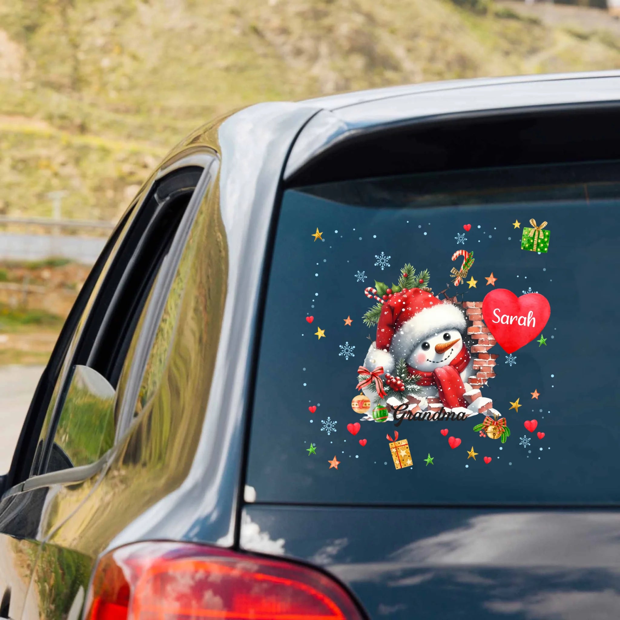 Snowman Grandma & Grandkids Personalized Heart Decal – Custom Name Christmas Sticker