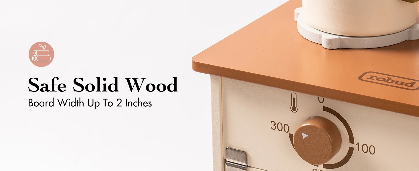 Set de cocina de madera para niños pequeños – Cocina de juguete con dispensador de cubitos de hielo, estufa, fregadero y accesorios – Set de cocina realista para niños a partir de 3 años