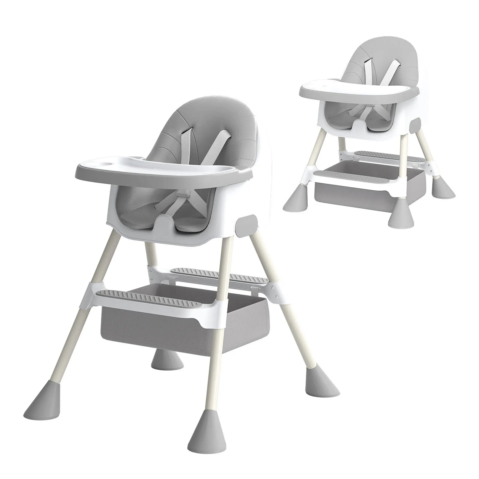 This modern 2-in-1 baby high chair is a standard, essential feeding chair designed to transition seamlessly with your child. It converts easily between a full-size high chair and a lower, independent toddler feeding seat (as shown in the 6 modes of use), providing a flexible and long-lasting solution for mealtimes.