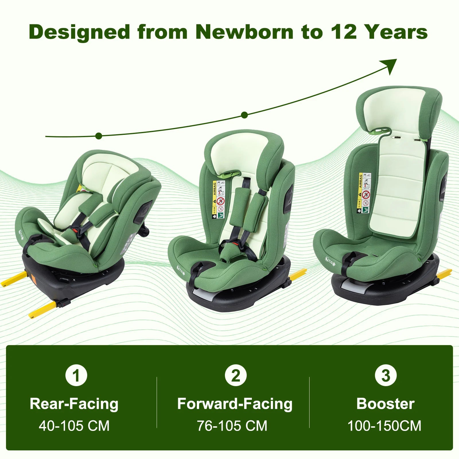 360° Swivel i-Size Baby Car Seat with ISOFIX, ECE R129/ADAC Certified, All-in-One Convertible Seat for Newborn to 12 Years (40–150 cm)