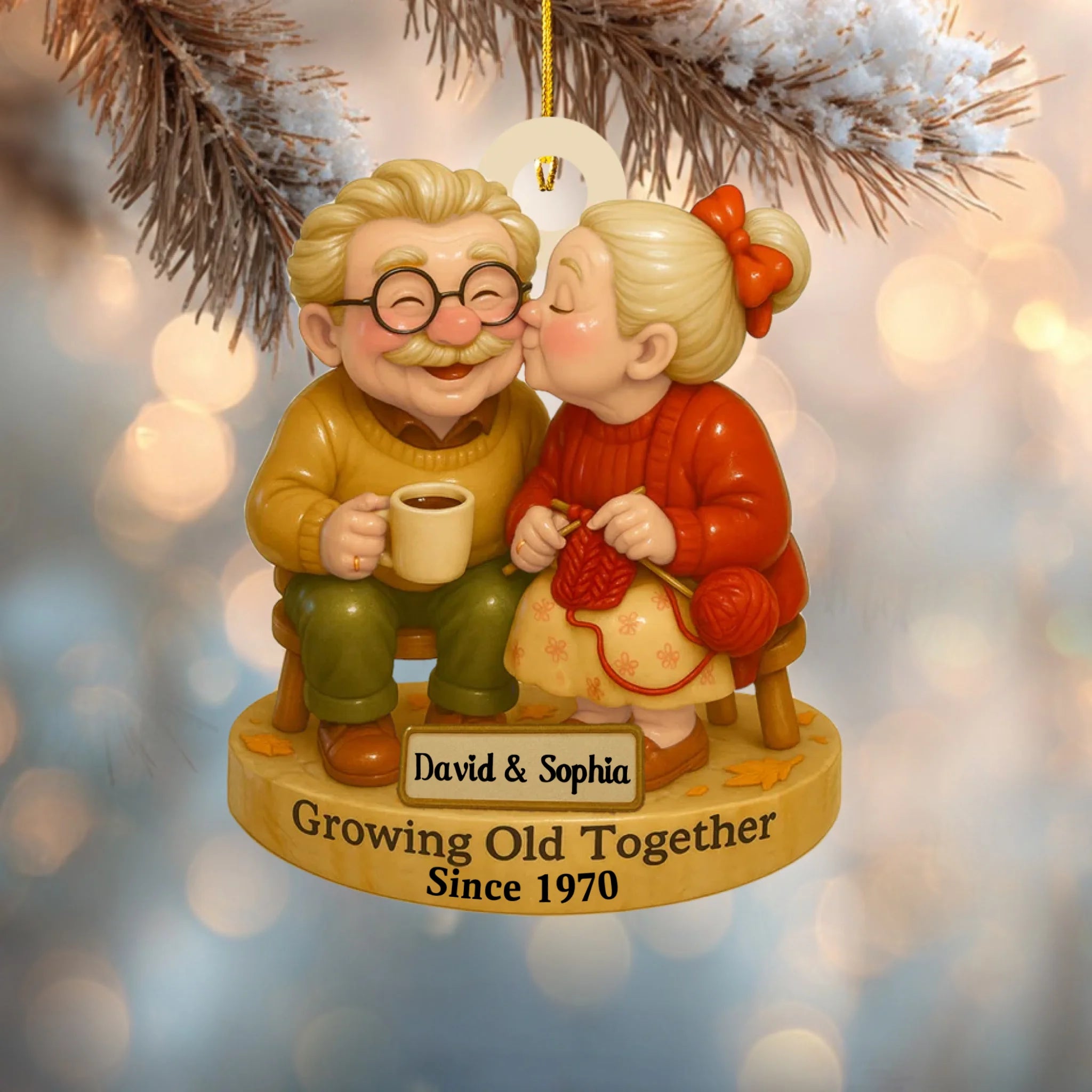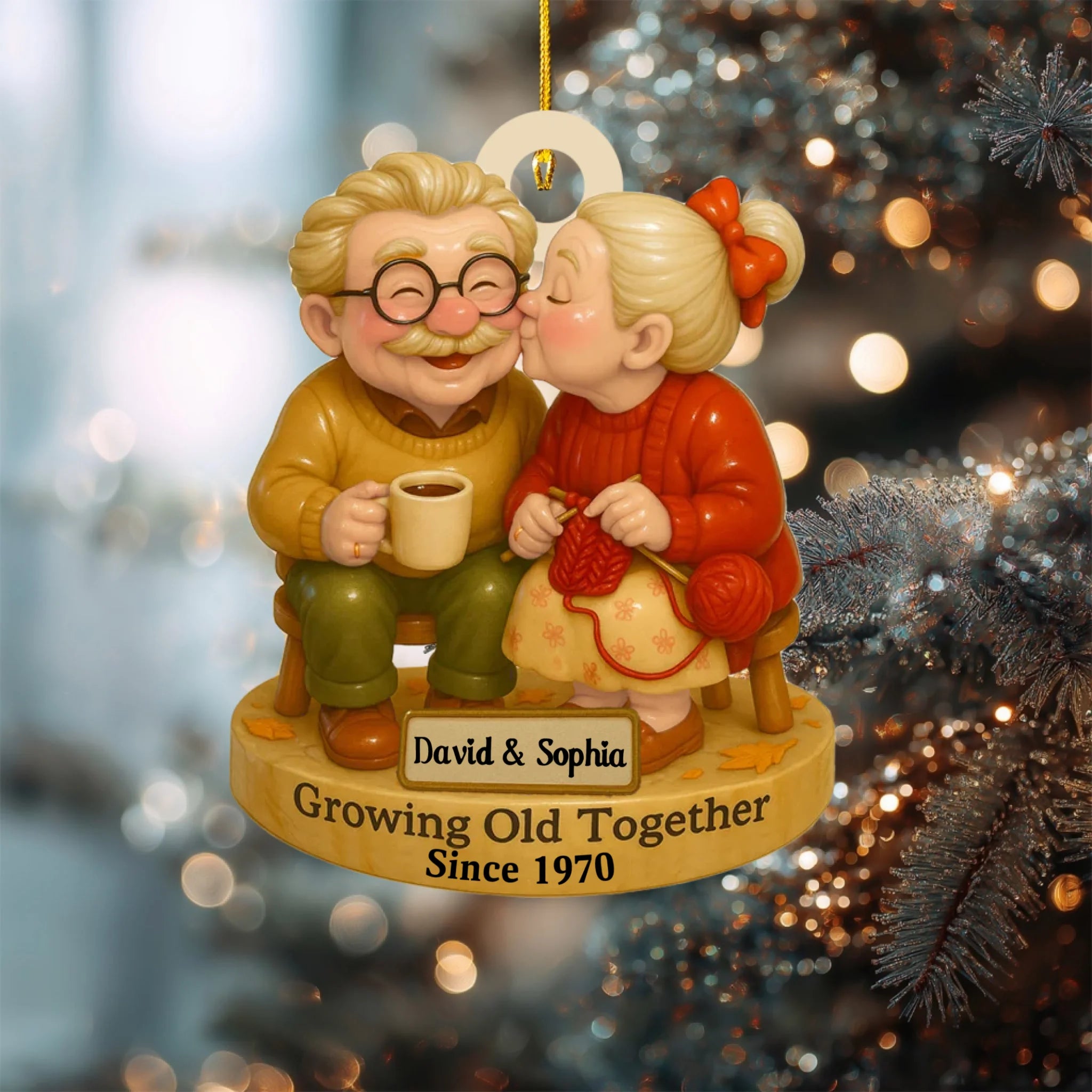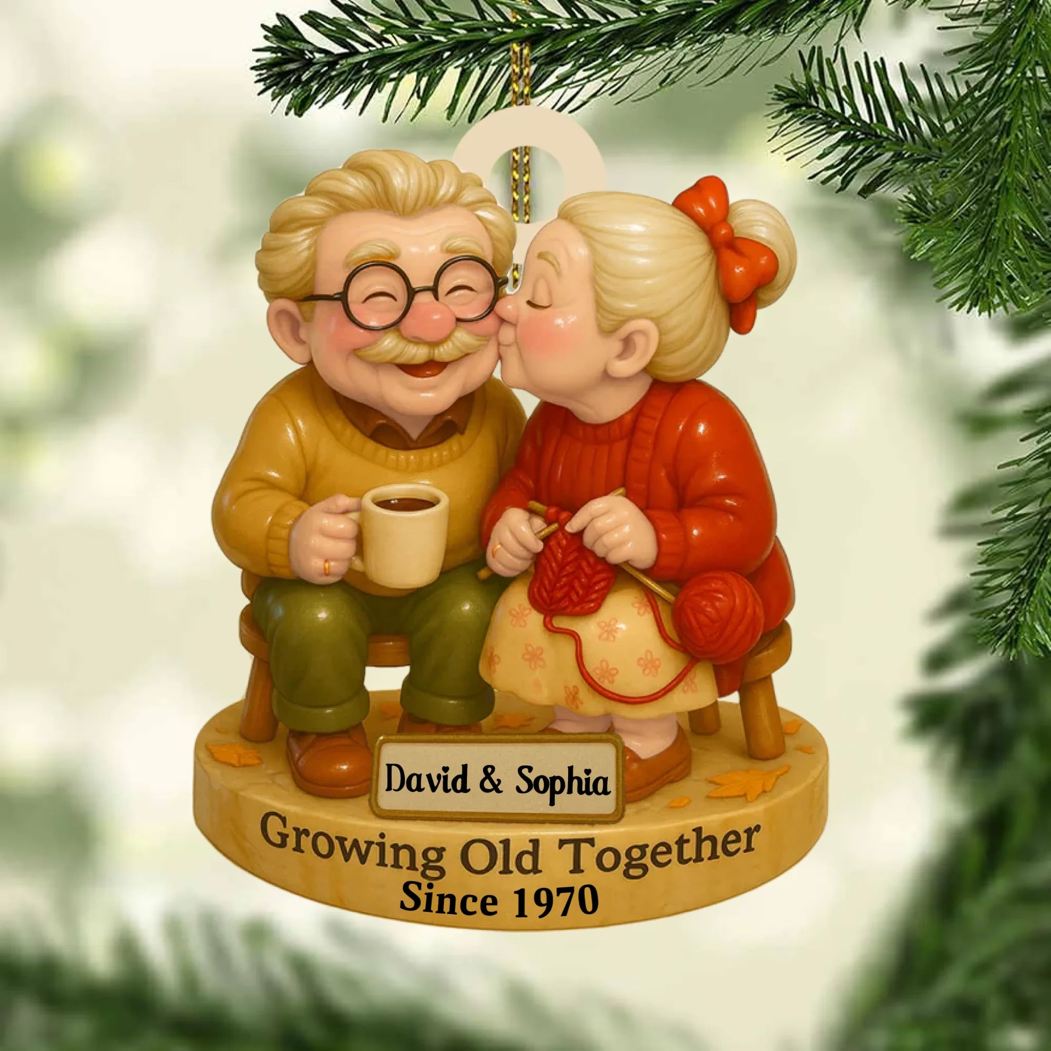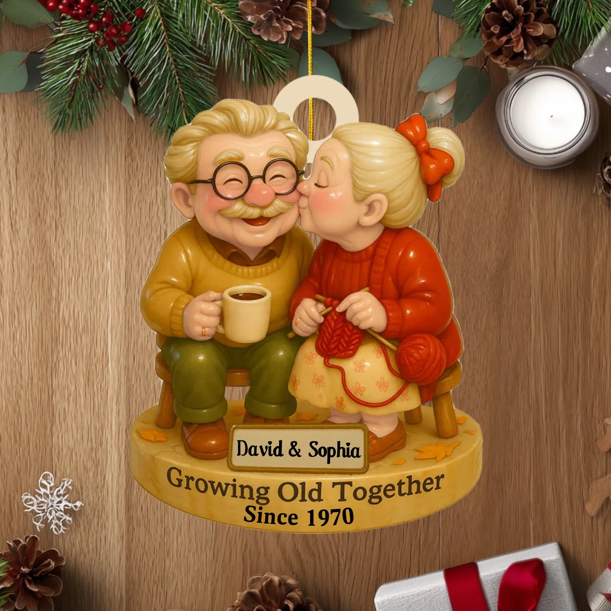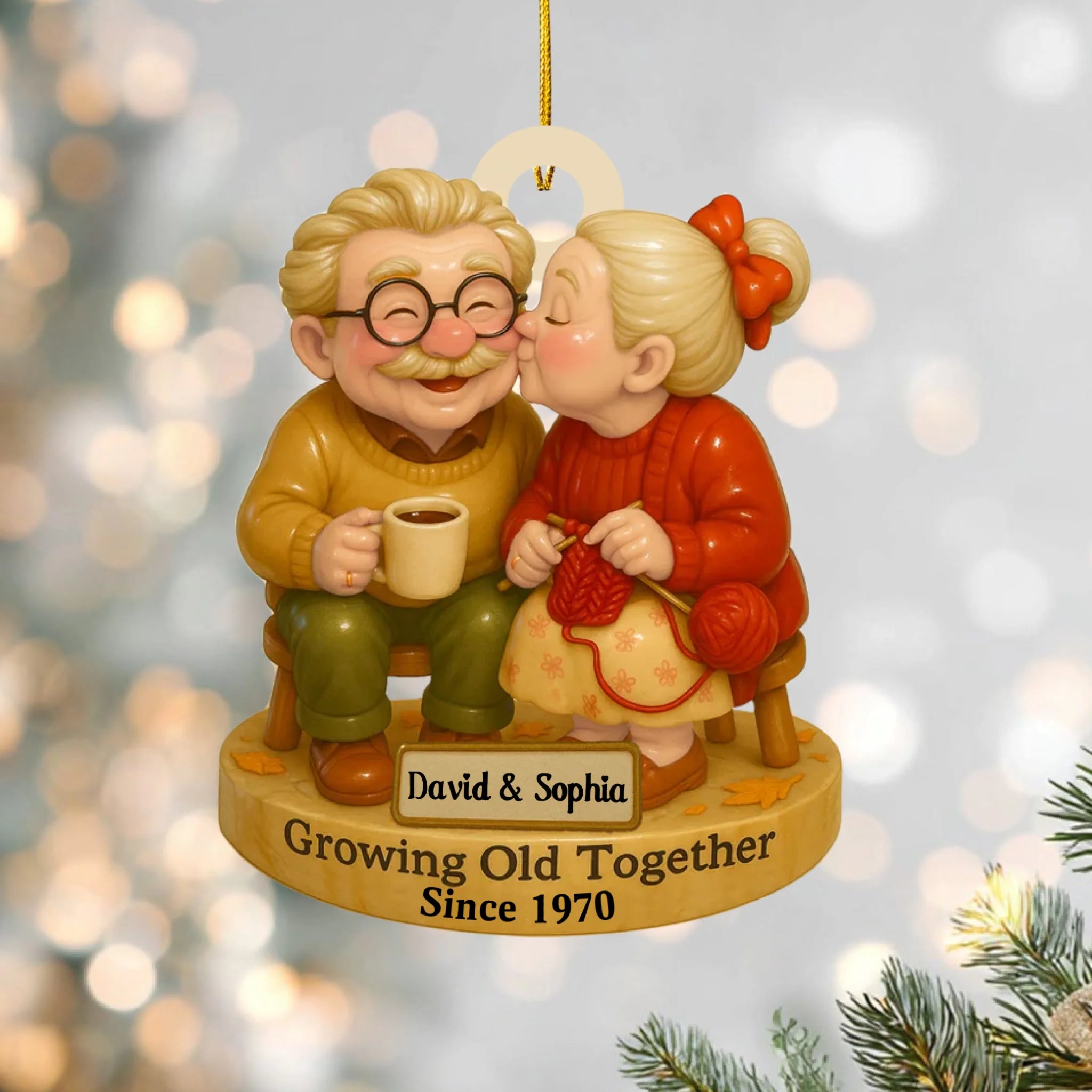 Custom Wooden Ornament for Couples – Old Couple "Growing Old Together" Personalized Anniversary & Christm