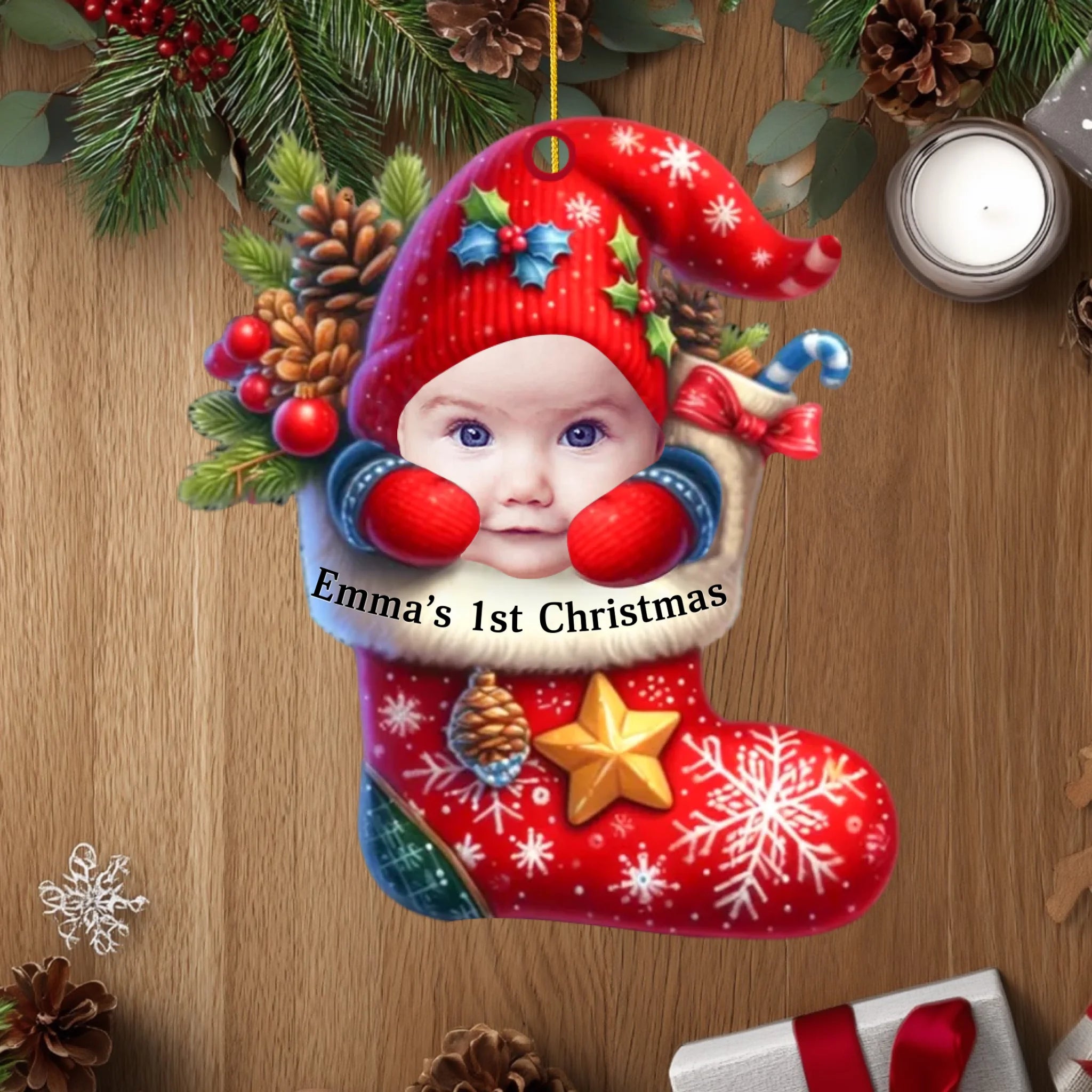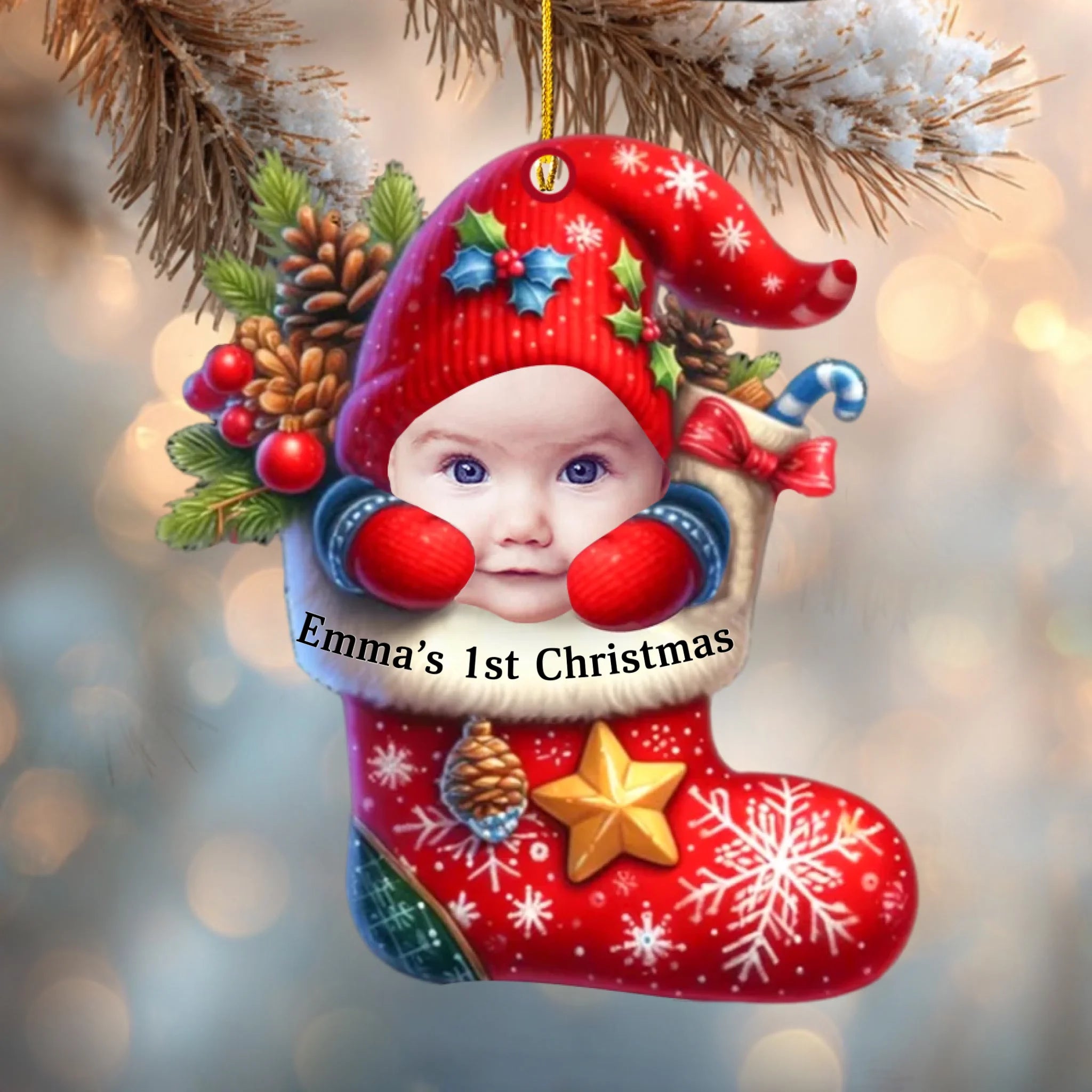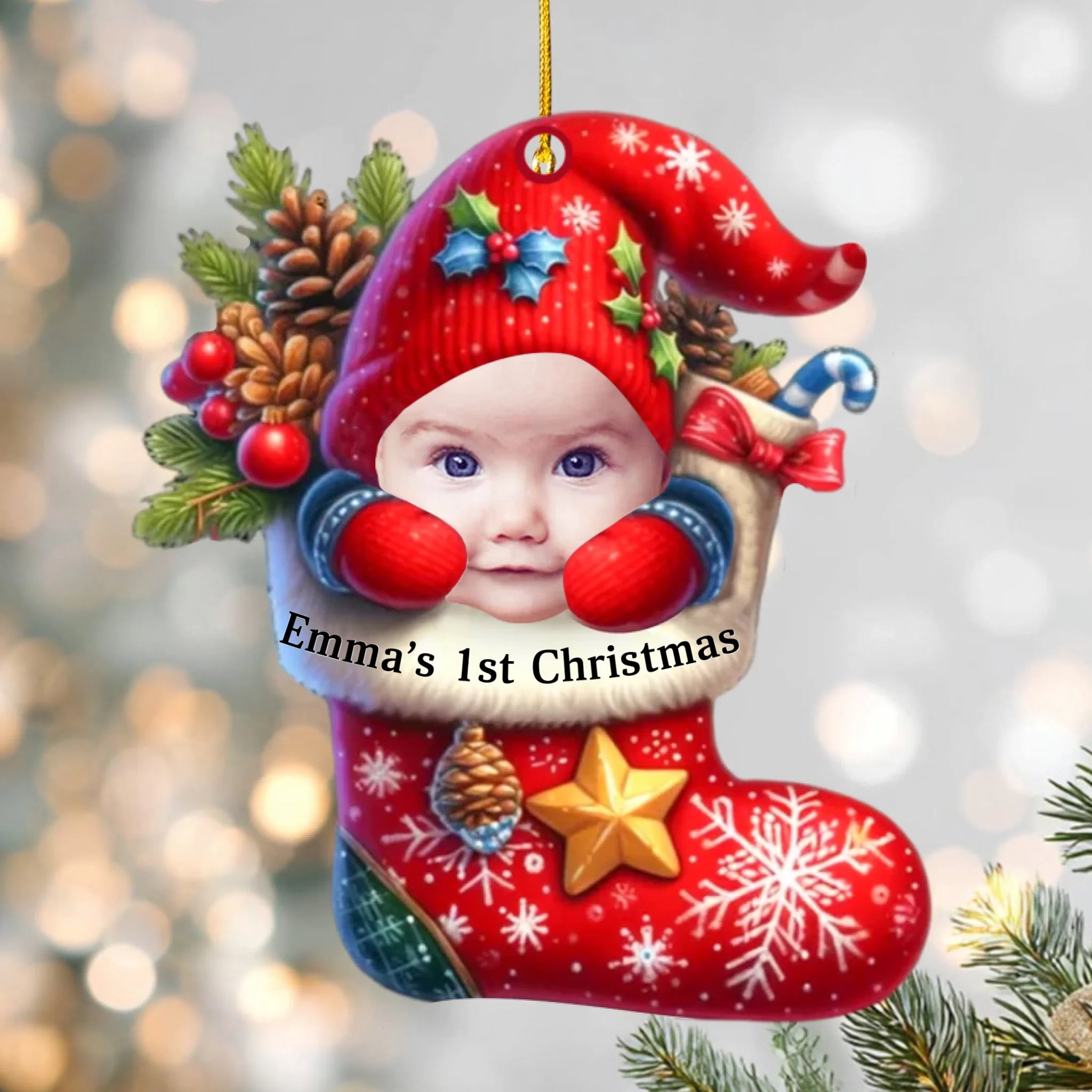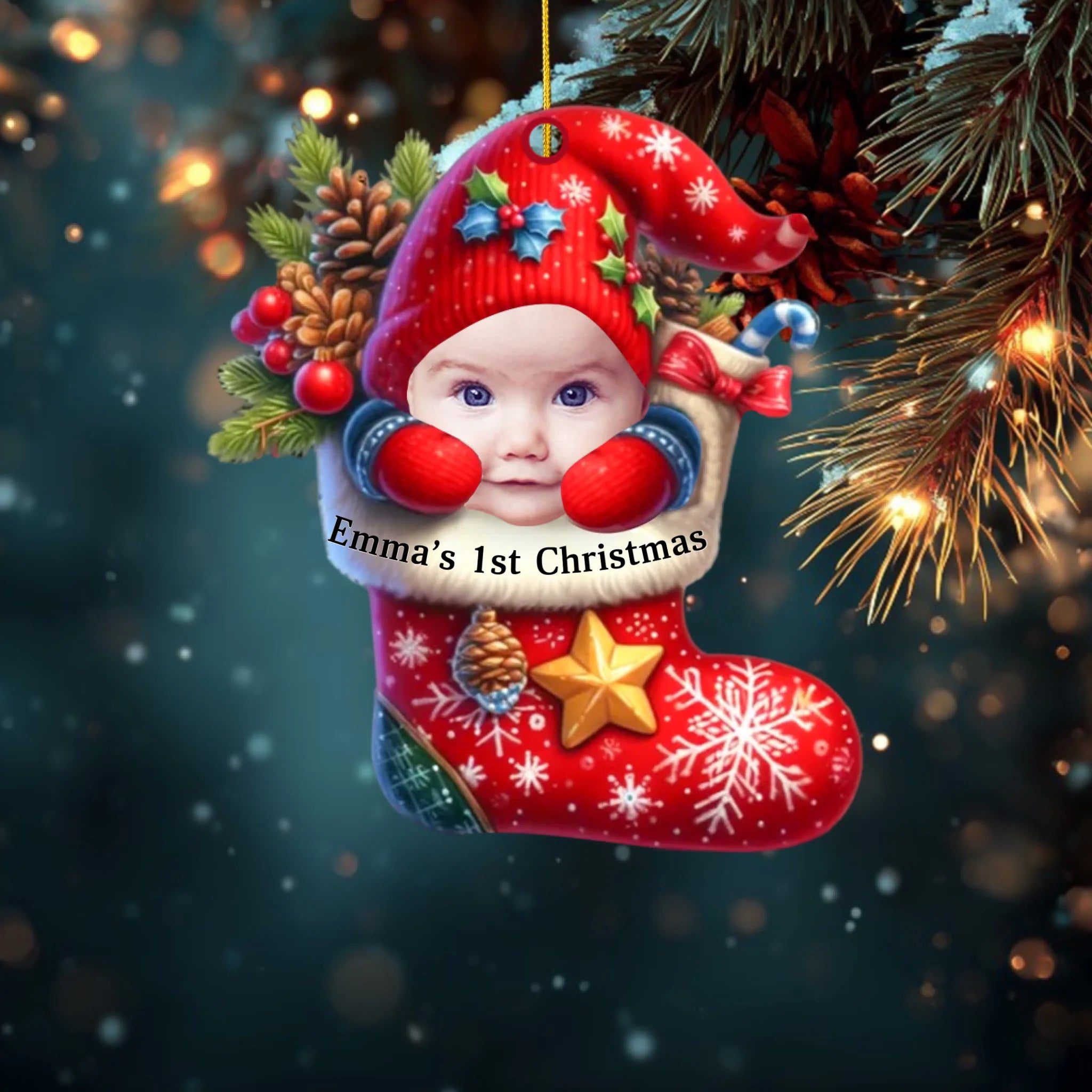 Personalized Baby’s 1st Christmas Ornament – Custom Photo Acrylic Stocking Keepsake, Cute Newborn Christmas Tree Decoration 2025