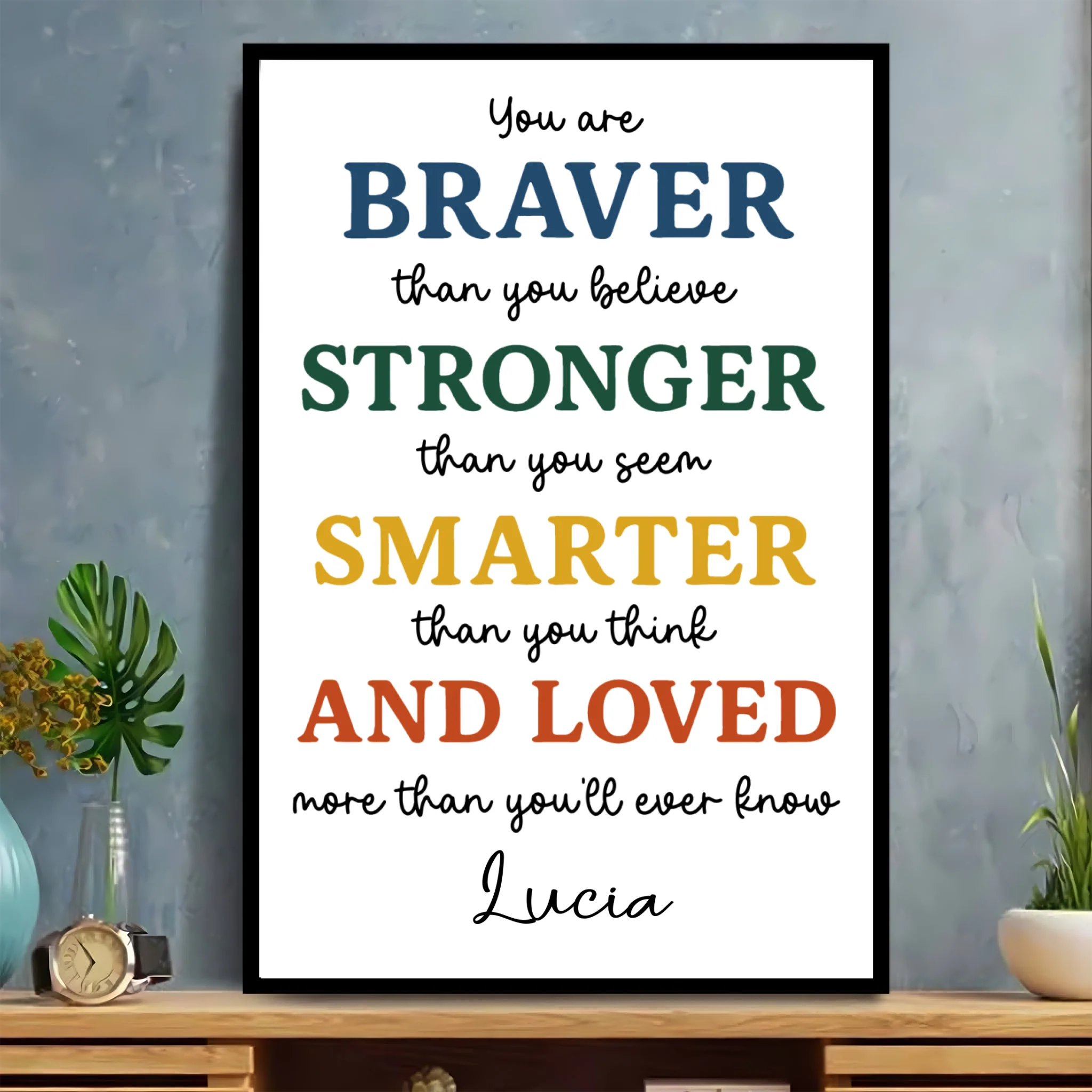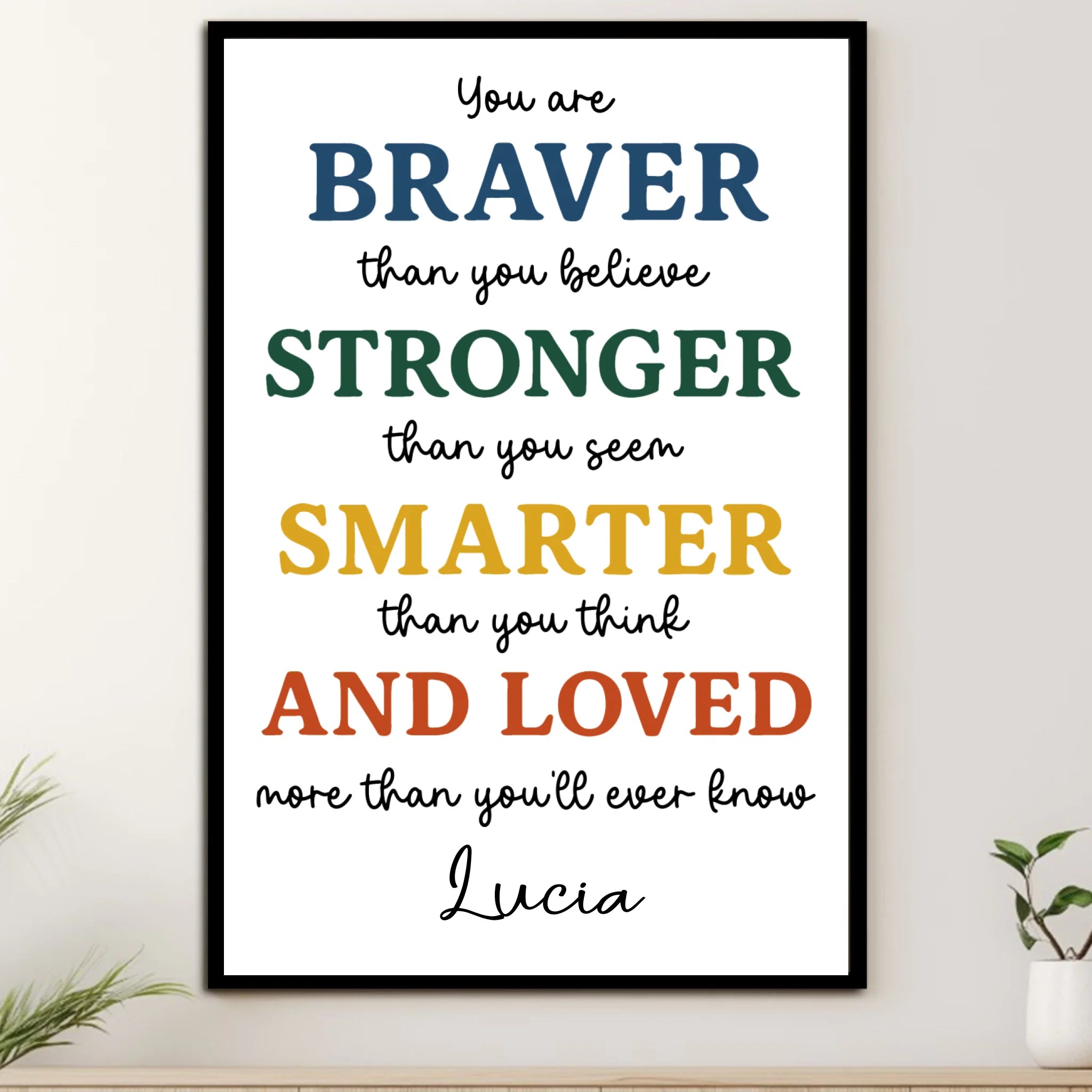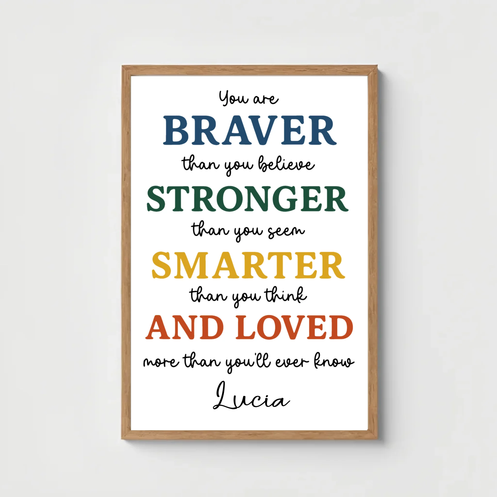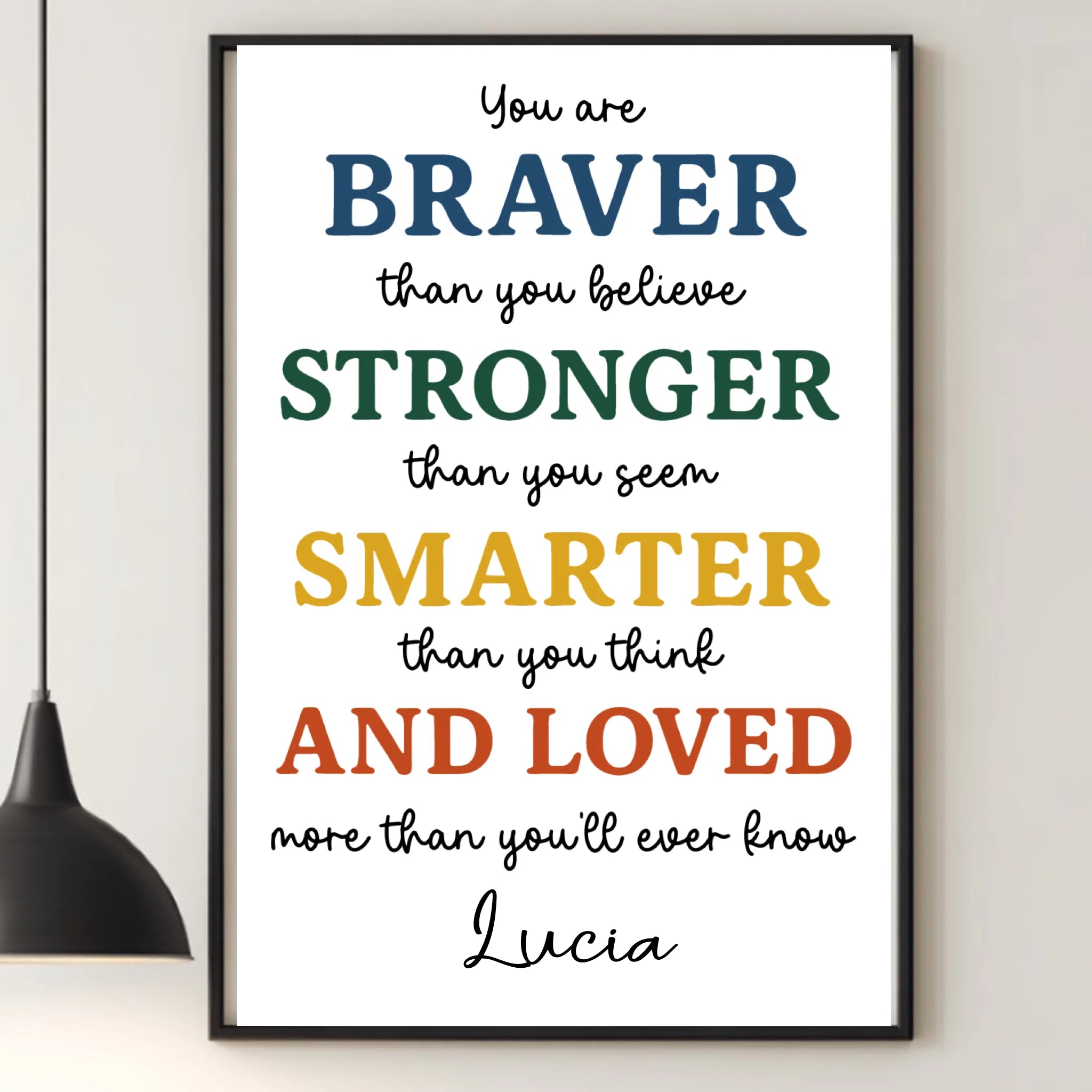 Personalized Motivational Quote Poster – “You Are Braver Than You Believe” Custom Poster, Inspirational Gift for Kids, Teens & Loved Ones