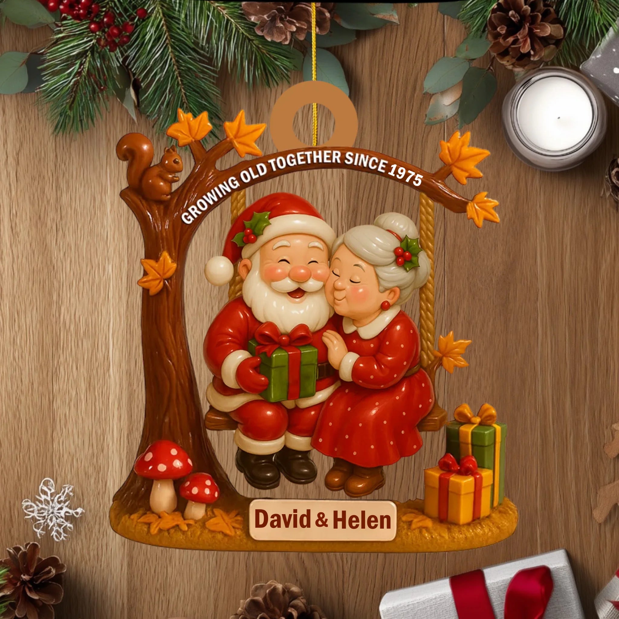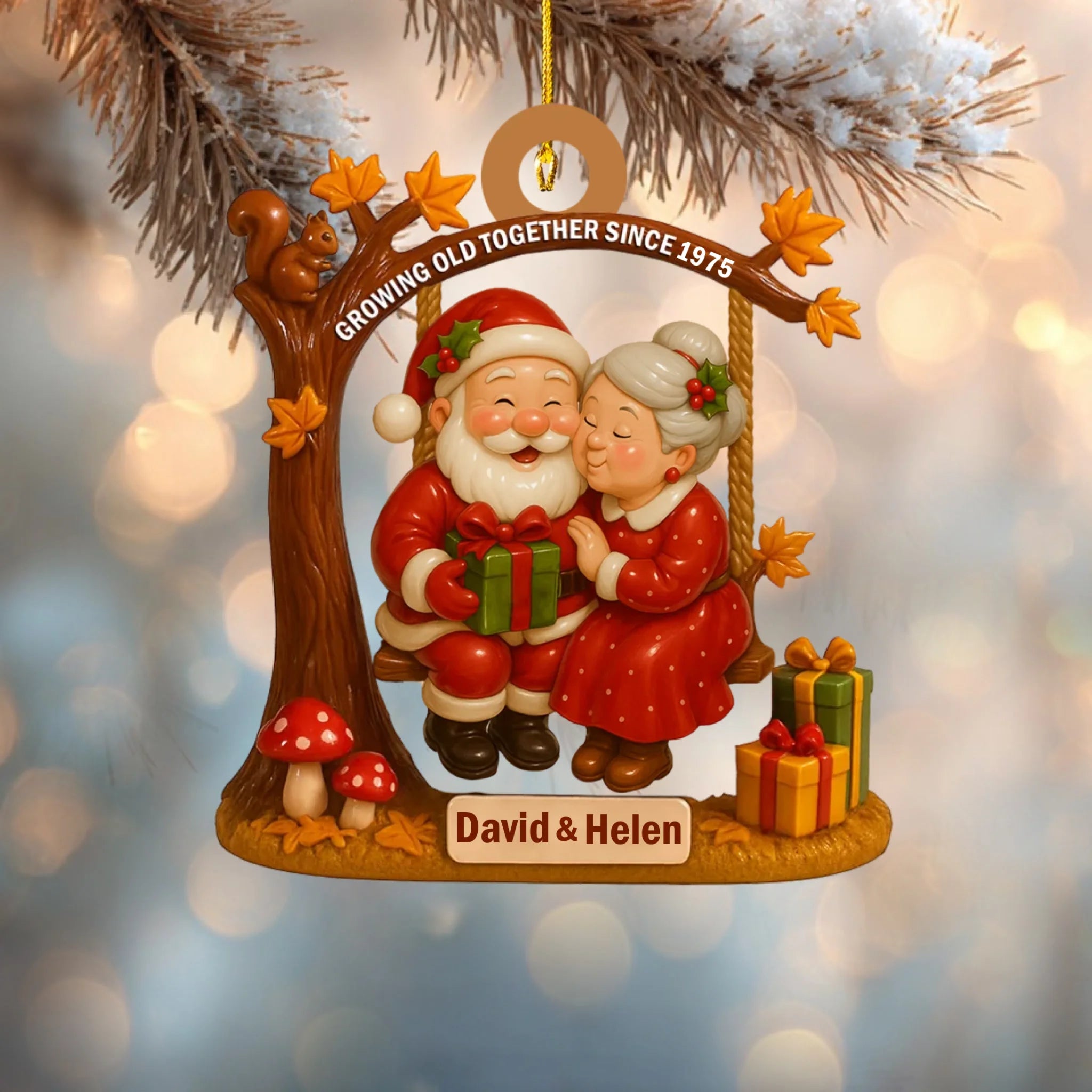 Celebrate the magic of the holidays with this charming Personalized Santa Couple Wooden Ornament, featuring a cozy Santa and Mrs. Claus sitting together with gifts, festive decor, and a customizable nameplate and year. Designed to honor love, togetherness, and cherished family memories, this ornament is the perfect addition to any Christmas celebration.