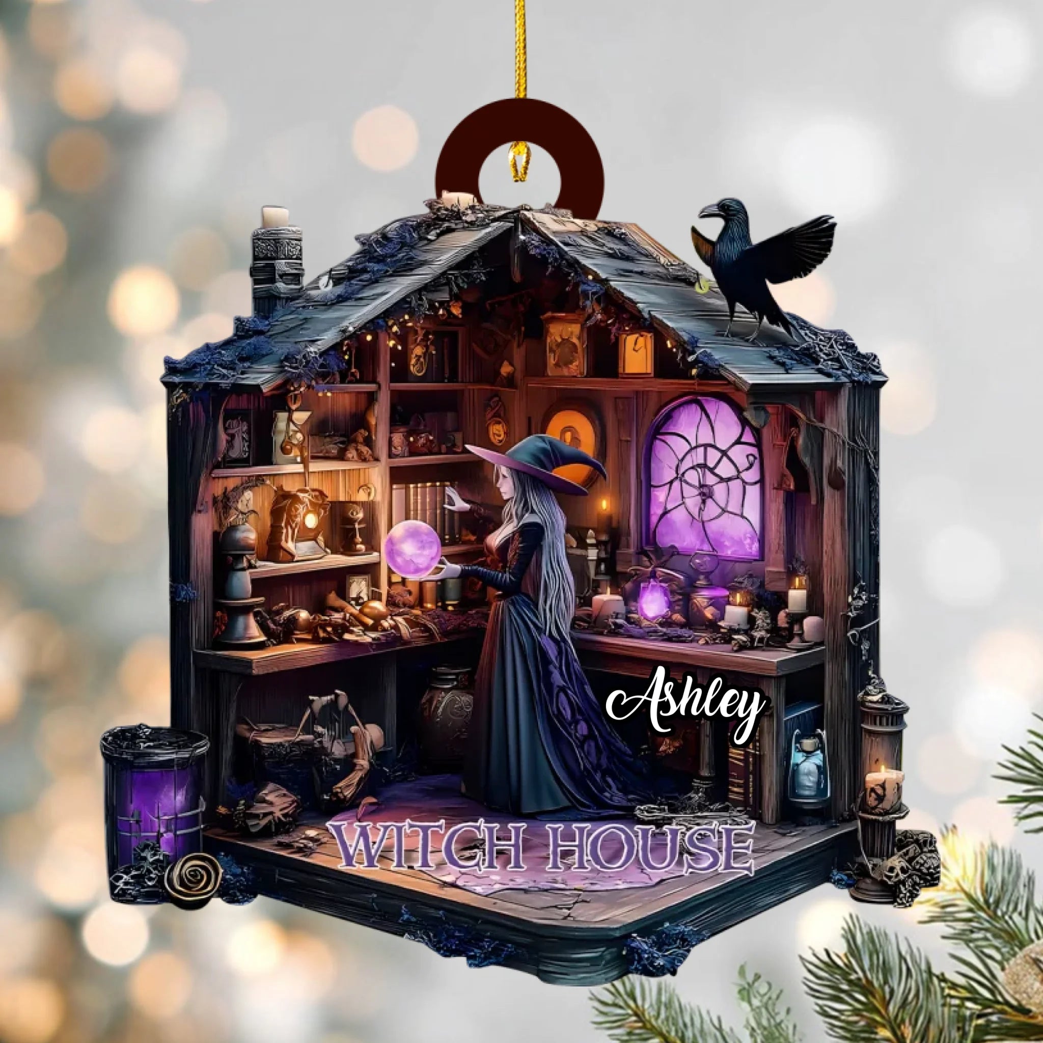 Personalized Witch House Wooden Ornament – Custom Name Halloween Decoration for Magic Lovers and Witches