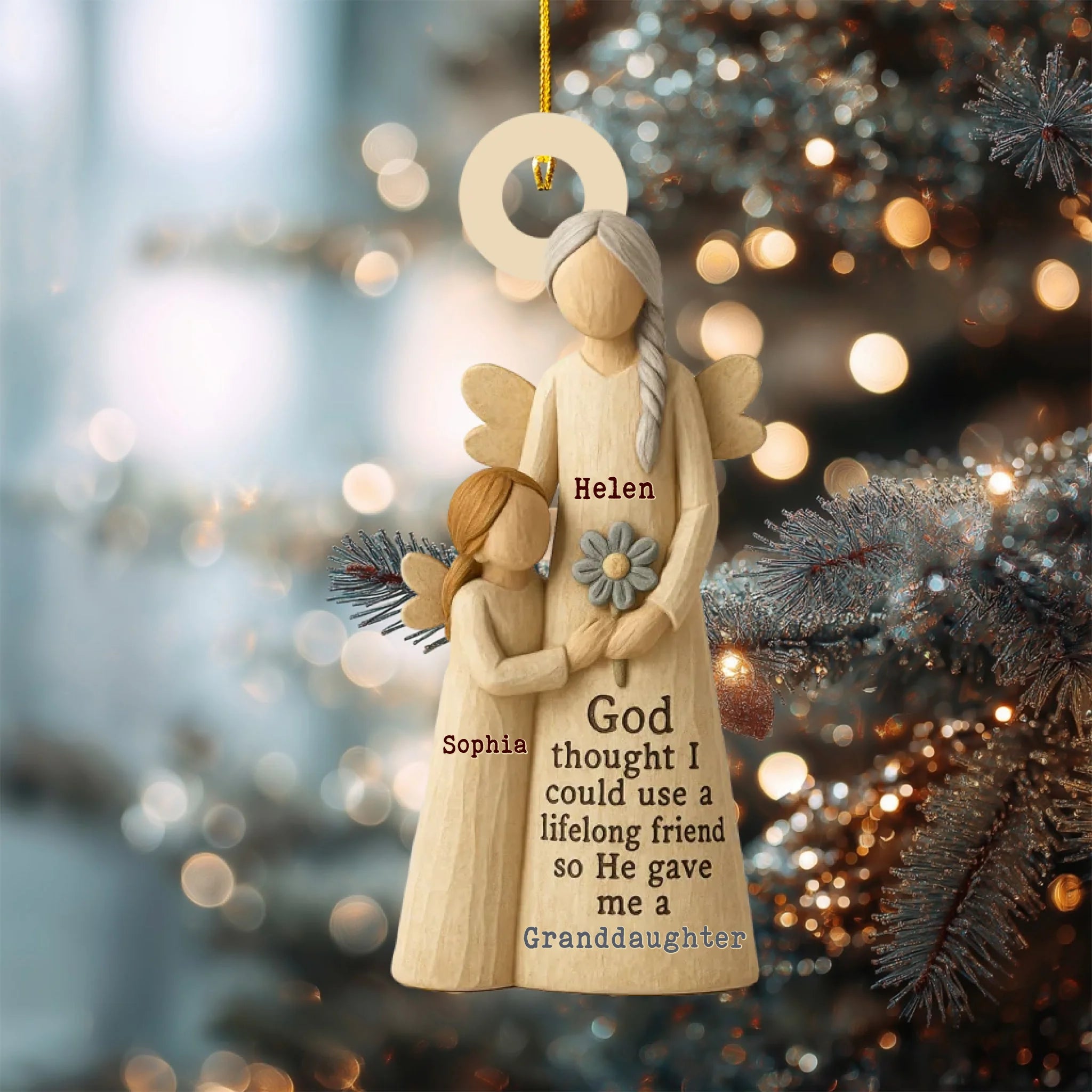 Personalized Wooden Ornament for Grandmother and Granddaughter – Custom Angel Design, Heartfelt Christmas Gift of Love