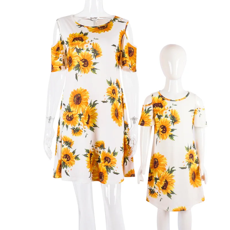 Sunflower Pattern Casual Loose Women's Dress For Mother And Daughter